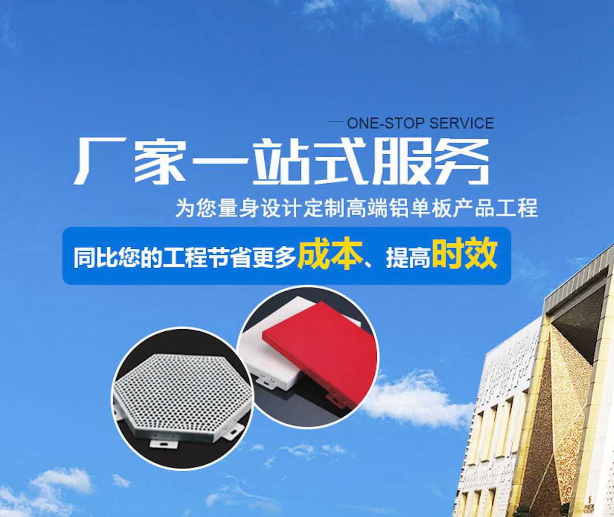 本公司是一家集铝单板设计、生产、销售、现代化企业。主要生产氟碳铝单板、冲孔铝单板、仿木纹铝单板、雕花铝单板、幕墙铝单板、仿石材铝单板、弧形铝单板及外墙铝单板等铝方通,U型铝方通等各种铝型材,各系列产品适用于商业楼、房地产、写字楼、地铁、机场、高铁站、医院、银行、学校、博物馆、别墅等场所的装饰工程。源头直供,质优价廉,随需定制,欢迎垂询。 我们郑重承诺:拒绝一切口头承诺,用心为您解决工期/质量/技术等一切困扰。